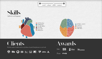 Le sezioni del sito illustrano i suoi migliori progetti durante la sua attività di designer e developer, le sue esperienze lavorative a Pisa, Milano e New York, i clienti ed i premi vinti. Il SXSW (http://sxsw.com) è un festival che dal 1987 ospita nei tre eventi distinti 'Interactive', 'Music' e 'Film' le nuove tendenze nel campo internet, musicale e cinematografico e raccoglie ogni anno decine di migliaia di presenze da ogni parte delglobo.