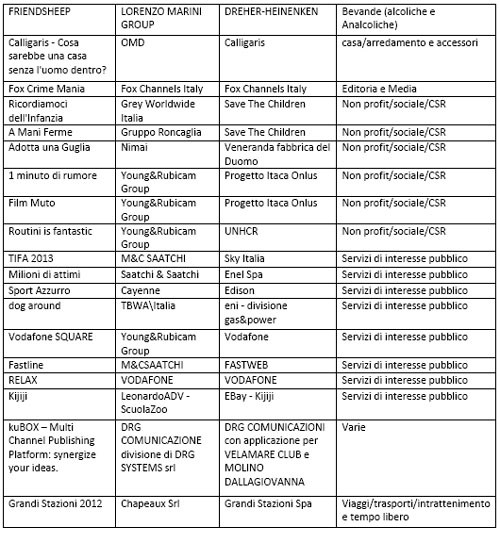 NC Awards 2013: ecco le 40 campagne in shortlist
