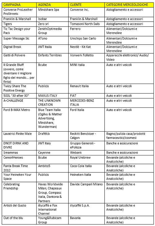 Le 40 campagne, ricordiamo, verranno nuovamente rivotate dalla giuria che si riunirà lunedì 25 marzo, presso l’Enterprise Hotel di Corso Sempione 91 a Milano con l'obiettivo di designare la Best Holistic Campaign.
