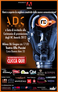 Assicurati un posto in sala all'evento più importante della comunicazione italiana, ideato e promosso da ADC Group e giunto quest’anno alla sesta edizione. Mercoledì 6 giugno a Milano, si alza il sipario sugli NC Awards presso il Teatro Elfo Puccini di Corso Buenos Aires 33. A condurre la serata saranno Marco Maccarini e Cristina Laura Bertarello. Salvatore Sagone, presidente ADC Group, farà gli onori di casa.