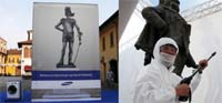 I passanti, attoniti e incuriositi, hanno riavuto dopo qualche giorno la statua perfettamente pulita. E questo è stato solo l’inizio: dal nord l’iniziativa si è poi spostata fino al sud Italia, riportando le statue sporche al loro splendore.