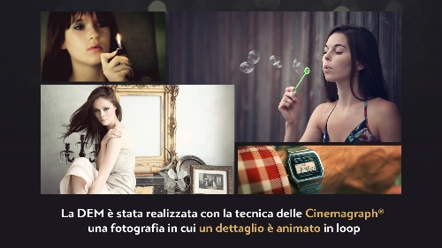 In particolare, la Dem Martini Royale è stata inviata al trade marketing per comunicare la partenza della nuova campagna televisiva. Per renderla di maggiore appeal e in linea col tema della campagna tv è stata realizzata con la tecnica delle Cinemagraph, ossia dettagli di scene che vengono convertite in gif animate in loop.