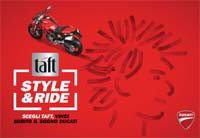 La forza del powergel Taft, quindi, unita al rombo Ducati per un mix unico di styling, tenuta e potenza. Da qui, il concorso Style&Ride e la comunicazione con il codice del 'moto freestyle': uno stuntmen a bordo di una Monster crea un'acconciatura sull'asfalto con burnout e sgommate. Nasce così il video virale e la declinazione sui vari mezzi off e online, che danno la possibilità all'utente di creare il proprio hairstyle con Ducati.