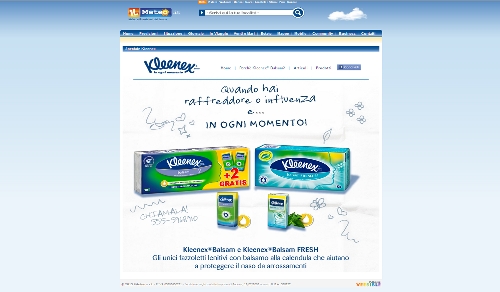 Soluzione creativa: è stata definita una partnership con ilmeteo.it, ideando una comunicazione guidata dalla temperatura. La creatività è stata realizzata in modo tale che il puntatore a forma di freccia si trasformasse in un pacchetto di Kleenex con link al sito dedicato e tag ‘Raffreddore o Influenza’. La temperatura indicata dal sito e rilevata nelle singole zone d’Italia stabilisce se il puntatore si trasforma in pacchetto di Kleenex, con una meccanica mouseover. Il puntatore si modifica con temperature ≤3°C per il Nord Italia, ≤6°C per il Centro e ≤10°C per il Sud, offrendo l’opportunità di comunicare sempre nel corretto contesto di ‘rischio freddo’. Il messaggio è stato così reso rilevante per il Nord, Centro