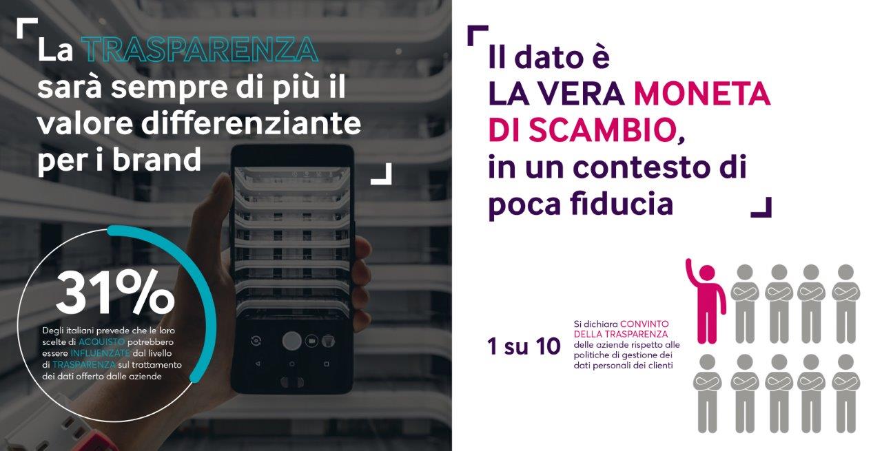 Ben tre italiani su dieci (31%), infine, prevedono che le loro scelte di acquisto potrebbero essere influenzate dal livello di trasparenza sul trattamento dei dati offerto dall’azienda che propone il prodotto o servizio che intendono acquistare.