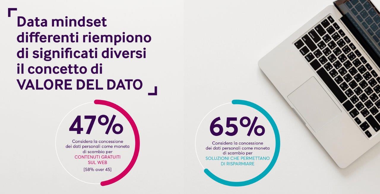 Preoccupazioni a parte, sette italiani su dieci (71%) si dichiarano consapevoli del valore commerciale dei propri dati personali, il 47% (58% negli over 45) concorda nella definizione di “moneta di scambio per contenuti gratuiti sul web” e indica nel risparmio la motivazione numero uno. Il 65% degli italiani si dice favorevole al consenso per l’accesso ai propri dati personali in cambio di“soluzioni che permettano di risparmiare”.