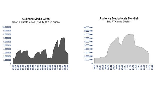 In media i giovani (15-34 anni) rappresentano circa il 15% del totale audience. Nella prima fase del torneo però, considerando la media degli incontri della prima settimana giocati nel pomeriggio e trasmessi da Italia 1, la loro quota sale al 21%, con un picco del 25% per Egitto-Uruguay del 15 giugno.