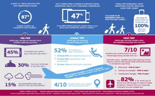 Questo trend è reso possibile anche dalla sempre maggiore disponibilità di app, considerato che ben l’82% delle 50 migliori compagnie di viaggio al mondo offrono le soluzioni mobile per assecondare la propensione all’uso degli smartphone e tablet dei propri clienti, e nel contempo fidelizzarli.