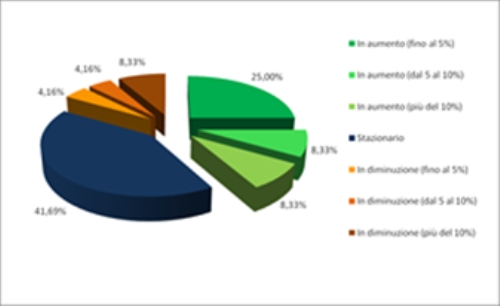 Il flusso dei visitatori è in aumento per il 41,66% degli associati coinvolti nell’indagine e invariato per il 41,69%. Il saldo positivo, al netto della componente stazionaria, è particolarmente significativo, +25%, soprattutto perché inverte l’andamento dello scorso trimestre (+4%) e torna in linea con la situazione di fine settembre 2014.