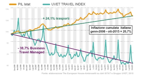 “Tra gennaio 2006 e ottobre 2015 - spiega Patanè -, l'inflazione è stata del 20,7%, mentre l'incremento dei prezzi nel settore trasporti si è attestato al 24,1%. In questo contesto, la dinamica dei prezzi nel business travel managed ha registrato una contrazione del 38,7%, nonostante i viaggi complessivi siano raddoppiati su base annua”.