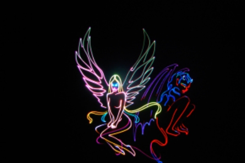Il laser show grafico è un vero e proprio minispot, dove poter andare a raccontare una storia, disegnare un logo, riprodurre una scritta. La particolarità di questa tecnologia è la capacità di andare a disegnare una luminosa outline dell’immagine (FOTO).