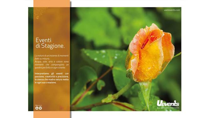 Eventi curati nel dettaglio, dove nulla è mai lasciato al caso. Eventi unconventional e creati su misura sulle esigenze del cliente. Eventi ‘interpretati’ con passione, creatività e precisione, la stessa che Madre Natura infonde in ogni sua creazione. E proprio da questa considerazione nascono la nuova campagna e il nuovo claim ‘Eventi di Stagione’ di Uevents che dal 21 marzo, il primo giorno di primavera, ne caratterizza la comunicazione.