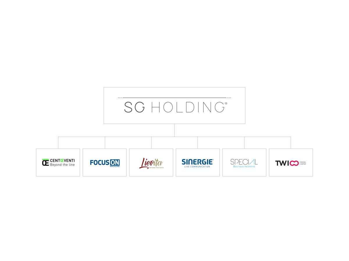 Le sei società controllate da SG Holding hanno competenze e core business specifici: il team di Centoeventi segue progetti strategici di comunicazione e attività integrate B2C dalla forte componente creativa, mentre Sinergie si concentra sui grandi eventi e comunicazione d’impresa, con focus sugli eventi B2B, sul Mice e viaggi incentive e sul Btl. La boutique incentive Special invece, continua a dedicarsi all’organizzazione di esperienze esclusive ed eventi tailor made. I clienti che operano nel settore del Food & Wine hanno a disposizione la consulenza del team di Lievita, che realizza concept e format di eventi ad hoc (come i già nati “Milano Food Week” e “Vi.Vite”). Per quanto riguarda, invece, l’aspetto digital, Twico si dedica alla social communication e alle nuove tecnologie per eventi. Infine, Focus ON rivisitato nel suo Dna è il nuovo progetto editoriale B2B inerente al mondo della comunicazione.