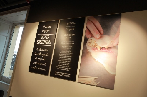 “La caratteristica che connota il Bistrot de Il Mercato del Duomo è proprio la sua capacità narrativa che risulta calda e coinvolgente - spiega Sara Pallaro, responsabile per FutureBrand dello sviluppo del concept creativo del progetto -. Abbiamo scelto di presentare le eccellenze italiane e i loro produttori in maniera diretta e moderna, lontana dalla retorica e d evitando ogni ricorso ai comuni codici della tradizione”.