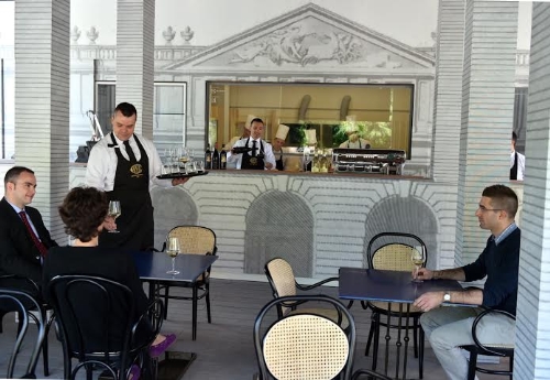 La nuova interpretazione della struttura all’aperto contamina il tempio del design con immagini evocative dei luoghi simbolo della storia di Milano. Rompendo gli schemi, Cova accoglierà gli ospiti anche sulla lunga tavolata 'sociale' in legno massiccio disegnata e realizzata dall'azienda Riva1920. Nel giardino, anche un’isola di tavoli coperta da una leggera struttura di legno e stoffa.