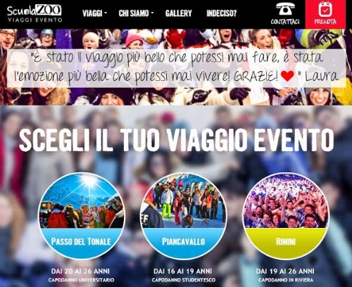"Non organizziamo vacanze ma Viaggi Evento. Tutti i ragazzi che partono con ScuolaZoo Viaggi Evento vivono una vera e propria life experience. Idealmente si potrebbe partire anche soli perché la struttura di ogni pacchetto permette di fare amicizia con i compagni di viaggio ancor prima di partire, si vivono esperienze indimenticabili come ad esempio la partecipazione a eventi nelle discoteche più belle d’Italia ed Europa".