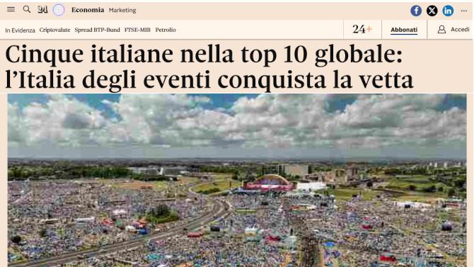 Il Sole 24 Ore: cinque italiane nella top 10 globale, l’Italia degli eventi conquista la vetta