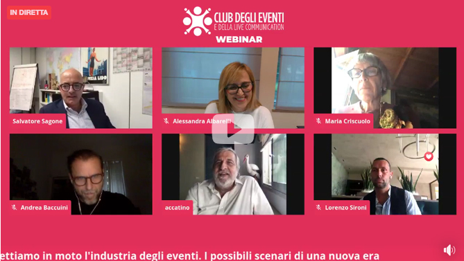 Moderati da Salvatore Sagone, portavoce del Club, sono intervenuti: Alfredo Accatino, Chief Creative Officer e Partner Filmmaster Events, Alessandra Albarelli, presidente di Federcongressi & Eventi, Andrea Baccuini, Partner e General Director di Big Spaces, Maria Criscuolo, Chairwoman & Ceo di Triumph Group International, Lorenzo Sironi, managing director Italian Icons Campari Group