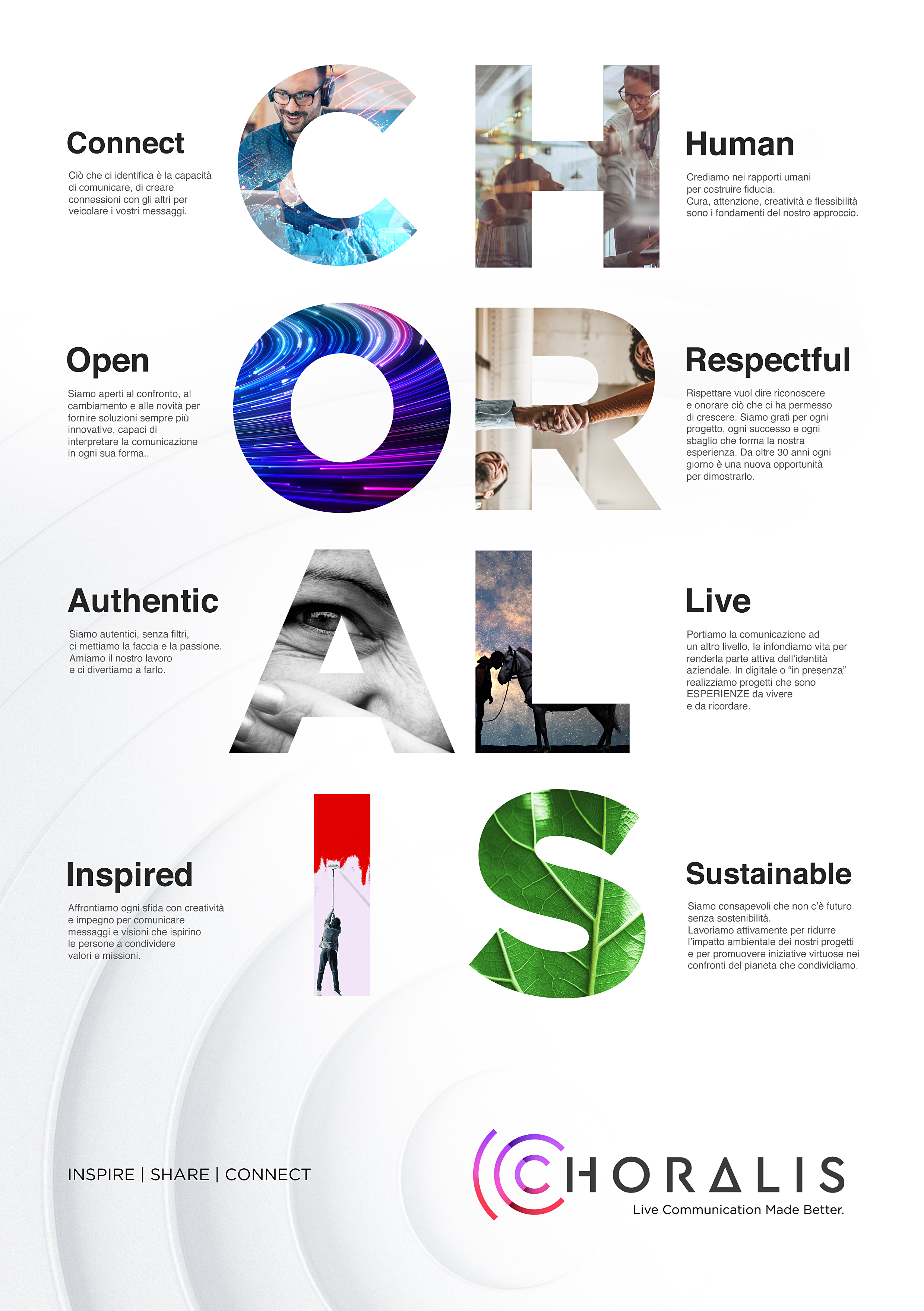 Si chiama Choralis il nuovo innovation hub nato dalla sinergia di Chorus Group e Chrysalis per dare vita a progetti di comunicazione integrati. Choralis condensa così il bagaglio di conoscenze ed esperienze nell’ambito creativo, formativo e logistico di due aziende impegnate da 30 anni nella comunicazione e negli eventi aziendali.