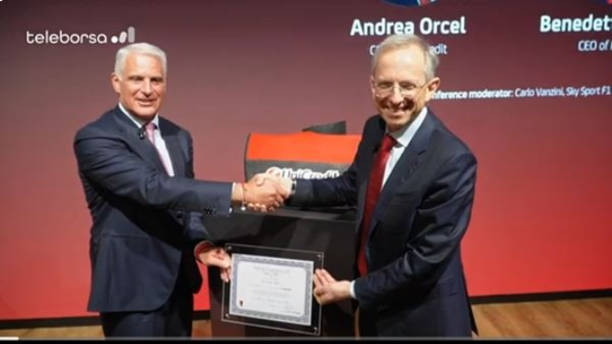 La partnership è stata suggellata anche da uno scambio simbolico di doni: Andrea Orcel ha regalato all’amministratore delegato di ferrari un’azione di Unicredit, mentre Benedetto Vigna ha donato ad Unicredit l’elemento aerodinamico della carrozzeria della monoposto in cui sarà presente il logo della banca.