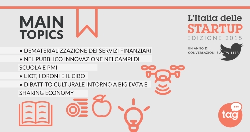 “Rispetto al 2014 – afferma Davide Dattoli, CEO e fondatore di Talent Garden – abbiamo rilevato come esca dalla top ten delle discussioni il tema #opendata, per lasciare spazio a termini come #fintech e #IoT (InternetofThings) che si piazzano rispettivamente al 3° e 4° posto dopo #startup (47%) e #innovazione (17%). Entrano, invece, nei primi dieci, rispetto all’anno precedente, #bigdata, #droni (abbinato a #photo) e #foodtech”.