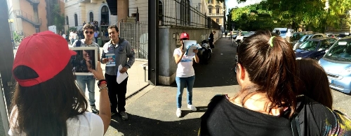 Una colorata carovana ha percorso le zone più frequentate di Roma. Hostess e steward hanno scattato foto ai passanti: la foto condivisa dà diritto a uno sconto per l'ingresso.