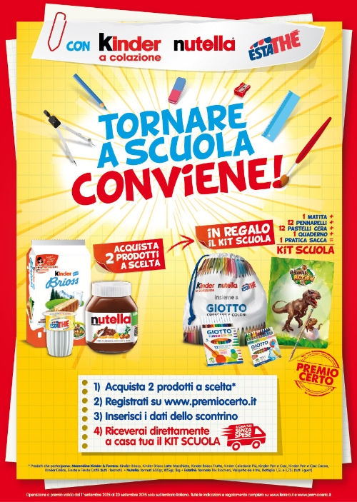 Si è appena conclusa con grande successo la campagna promozionale per il ritorno a scuola promossa da Ferrero nelle principali catene della GDO, dal claim: 'Con Kinder & Ferrero tornare a scuola conviene!'.