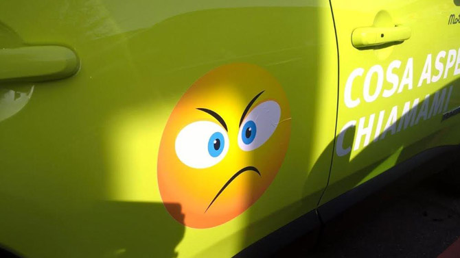Tutti i veicoli sono brandizzati e wrappati e, utilizzando il linguaggio giovane dei social network fatto di maxi emoticon sulle portiere, invitano in sede i clienti a vedere e provare la vasta gamma dei modelli commercializzati.