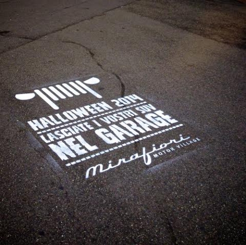 'Halloween 2014. Lasciate i vostri suv nel garage': questo il consiglio firmato Mirafiori Motor Village che, a partire dal 28 ottobre, i torinesi hanno ricevuto attraverso numerosi graffiti comparsi sull’asfalto delle vie centrali della città.