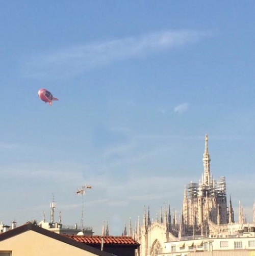 Nelle prime ore del pomeriggio, il dirigibile, con i suoi 42 metri di estensione, si è alzato in cielo nei pressi dell stadio di San Siro, ha sorvolato Piazza Duomo, passando dal Castello Sforzesco e dalle vie del centro città, per poi fare rotta verso Assago, ripreso anche dalle telecamere di Sky TG24 che attorno alle ore 17.45 hanno trasmesso live l’arrivo in volo del dirigibile nelle immediate vicinanze del Mediolanum Forum.