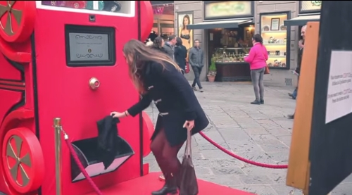 Uno speciale distributore interattivo posizionato in Via Calzaiuoli a Firenze ha coinvolto le passanti invitandole a mettersi in gioco e sfidandole a lasciare una parte del proprio outfit in cambio di una Carinabag.