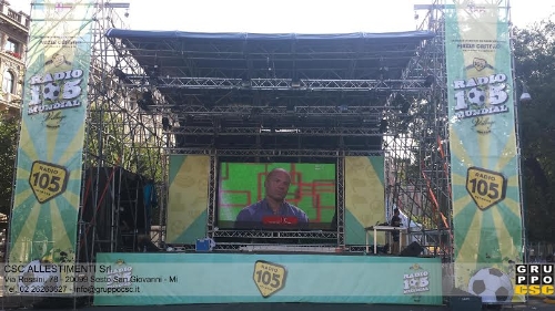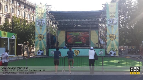CSC, nello specifico, ha allestito il palco coperto che ospita il maxischermo, ha fornito a noleggio la pedana per lo studio mobile di Radio 105, sei gazeboe gli standdello street food, progettati e realizzati da Gruppo CSC ad hoc per l’occasione.