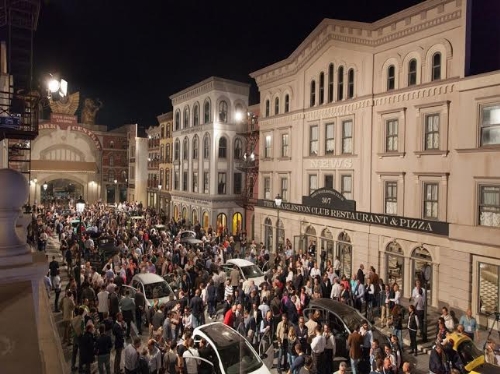 Quindi, via alla seconda parte, nel parco tematico Cinecittà World. 18 vetture sono arrivate alle spalle degli ospiti, e all’accensione delle luci tutti hanno potuto esaminarle, ripresi da una regia bicamere studio full HD e da una radiocamera mobile che coglieva i dettagli sia delle auto sia delle espressioni soddisfatte dell’audience.