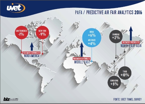 Analytics) creato da Uvet che stima l'andamento delle tariffe aeree nel prossimo anno.