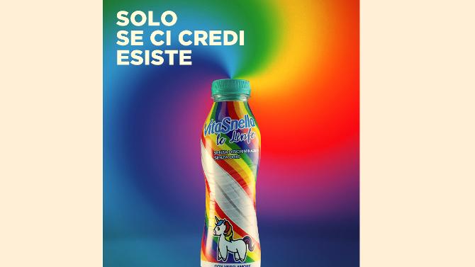 Per la Linfa Unicorno, una limited edition delle acque funzionali da 500ml che uniscono la leggerezza dell'acqua Vitasnella alle virtù benefiche dei loro ingredienti, è stata scelta una combinazione speciale piena di vero amore, ma senza odio né discriminazioni.