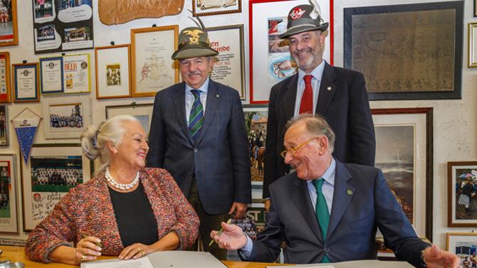 L’accordo è stato sancito presso la sede della storica azienda produttrice di birra, a Lagundo, tra la proprietà di Birra FORST, rappresentata dalla Presidente Margherita Fuchs von Mannstein, e il Comitato Organizzatore dell’Adunata (COA), per il quale erano presenti il Presidente Renato Genovese e il Vice Presidente Maurizio Pinamonti nonché Presidente della Sezione ANA di Trento, e Claudio Gario, Amministratore Unico di Servizi ANA.