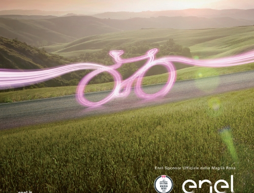 A dare supporto alla sponsorizzazione è stato realizzato un soggetto (la creatività è di Saatchi & Saatchi e la pianificazione diMindshare) per la stampa e il web. Il piano prevede uscite sulla stampa quotidiana e periodica dall’inizio di maggio e una campagna internet display da aprile a Settembre. L’annuncio evoca l’Italia del Giro attraversata da un’energia nuova: quella di Enel che scende in pista per supportare la Maglia Rosa.