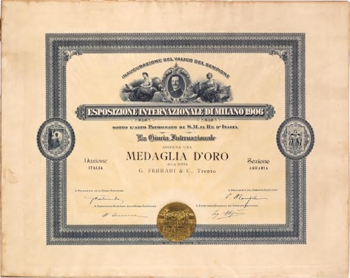 Il legame tra Ferrari e Expo ha radici storiche che rimandano all’Esposizione Internazionale di Milano del 1906. In quell’occasione, la piccola cantina trentina, fondata solo quattro anni prima, si aggiudica la Medaglia d’Oro (FOTO), il primo di una lunga serie di riconoscimenti.