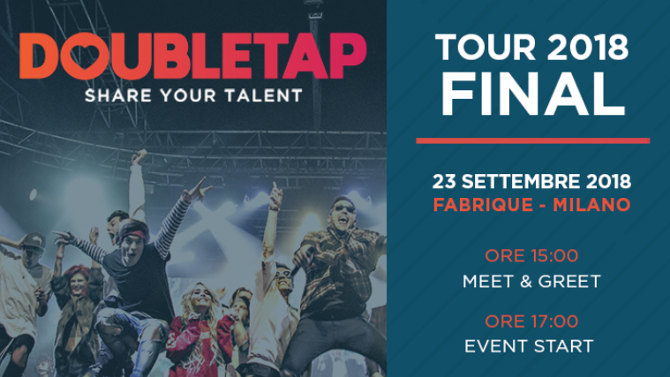 L’evento si terrà a Milano il 23 settembre – inizio ore 17:00, meet&greet dalle 15:00 - e permetterà di vedere dal vivo sul palco le performance dei creator vincitori delle selezioni locali fatte in occasione delle tappe del #DoubleTapTour di questa estate.