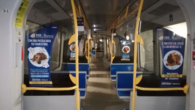 Su ogni treno sono presenti 18 vetri che separano gli spazi interni e che ora ospitano il celebre bassotto testimonial di RataBassotta, il prestito di IBL Banca dedicato ai lavoratori dipendenti e ai pensionati. In totale, sono 756 i messaggi pubblicitari esposti, diversificati in vari soggetti: “La cessione del quinto n.1 in Italia”, “Il prestito che cerchi è a un metro da te” e “Con una piccola rata fai sogni d’oro”. A questi, si aggiunge “Ratabassotta Baby, il futuro a piccoli tassi”, la campagna che presenta il piccolo prestito, new entry nel portafoglio prodotti della banca.