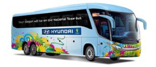 Hyundai ha consegnato i 32 autobus che accompagneranno le squadre di calcio durante gli spostamenti. Tutti gli autobus saranno decorati con i colori di ciascuna Nazionale e con gli slogan vincitori del contest internazionale Be There with Hyundai, pensato per invitare i fan di tutto il mondo a proporre claim personalizzati per i bus ufficiali delle squadre partecipanti alla Coppa del Mondo.