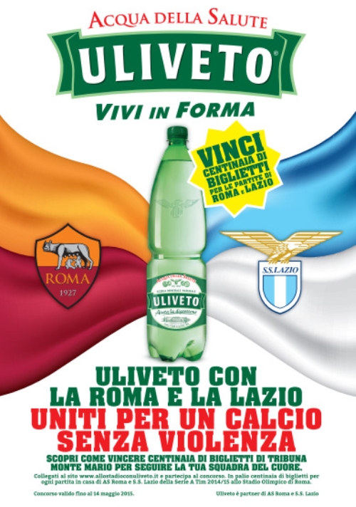Infatti, collegandosi al sito www.allostadioconuliveto.it, i consumatori di Acqua Uliveto potranno vincere centinaia di biglietti per assistere alle partite in casa che ciascuna delle due squadre giocherà allo Stadio Olimpico di Roma, per tutta la stagione calcistica di Serie A 2014-2015.