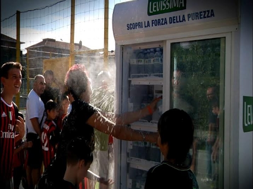 Levissima ha infatti posizionato in mezzo al flusso dei tifosi quello che all’apparenza poteva sembrare un semplice frigorifero, contenente le bottigliette di acqua. L’invito è stato 'Immergiti nella freschezza': i tifosi rossoneri si sono così avvicinati allo special fridge, e, aprendo lo sportello, inaspettatamente sono stati investiti da una cascata di fiocchi di neve.