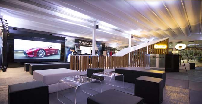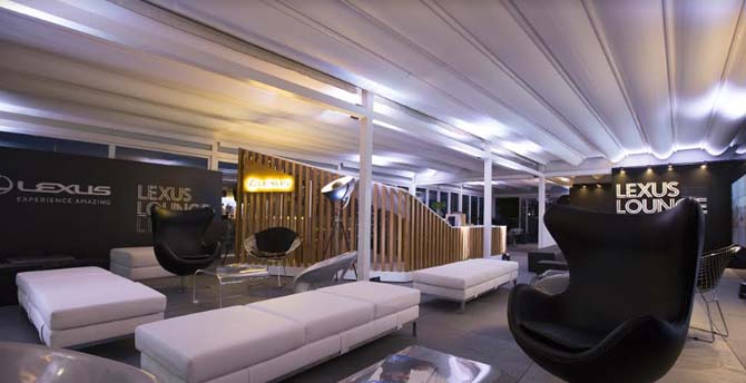 L’interior design della Lounge Lexus Lido è stata sviluppata intorno ai concetti di Takumi (saper fare in senso artigianale) e Omotenashi (saper accogliere), alla base della filosofia della casa automobilistica giapponese. I materiali e i colori utilizzati nell'allestimento degli spazi e lo studio delle forme sono stati pensati appositamente per ricreare il celebre concetto di accoglienza giapponese in un contesto di design moderno ma artigianale, caratteristico del Sol Levante, completata esternamente da una ricercata pedana dove è visibile l'esclusiva coupé Lexus LC Hybrid La Lexus Lounge Lido è aperta dal 30 agosto fino al 9 settembre 2017 e ospita un ricco palinsesto di presentazioni, interviste live in esclusiva e party su invito, aperti a un pubblico di giornalisti e addetti stampa e PR.