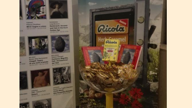 Ricola da diversi anni sostiene le mostre in collaborazione con Arthemisia, promuovendo spazi ed eventi di cultura di qualità ed offrendo a tutti gli spettatori la possibilità di assaggiare i suoi prodotti alle 13 erbe benefiche. La grande novità è che sarà disponibile all’assaggio la nuova caramella Herb-Caramel dal gusto unico. La ricetta di questo nuovo prodotto Ricola unisce alle 13 erbe la golosità del caramel con un pizzico di sale delle Alpi. Ricola Herb-Caramel è naturalmente dolcificata grazie alla stevia, non contiene lattosio né glutine e ha una profumazione simile a quella del bergamotto grazie all’estratto della Melissa d’Oro, preziosa pianta svizzera. Le caramelle svizzere saranno presenti per tutta la durata della mostra per deliziare il palato di tutti i visitatori.