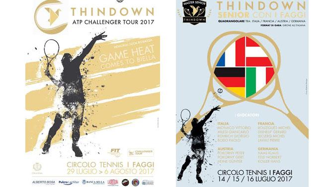 Il Thindown Master Senior è il quadrangolare che vedrà sfidarsi Italia, Francia, Austria e Germania sulla terra rossa del campo piemontese. Dal 14 al 16 luglio i giocatori si sfideranno per conquistare il montepremi da 10.000 dollari. Il Thindown ATP Challenger, in calendario dal 29 luglio al 6 agosto, prevede un premio in palio per il vincitore di 125.000 dollari e la sponsorizzazione include l’hospitality per gli atleti.