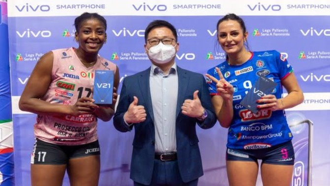 vivo, title sponsor della Lega Pallavolo Serie A Femminile, consegna gli smartphone V21 5G a Miriam Sylla e Caterina Bosetti