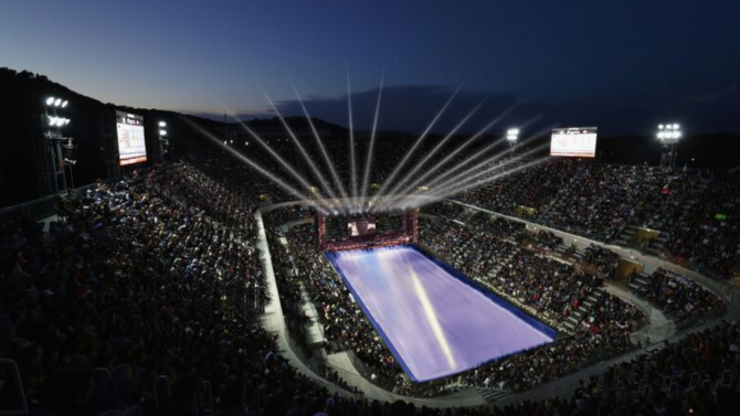 Un grande allestimento con una pista di ghiaccio centrale di circa 800 metri quadri, l’Orchestra Roma Sinfonietta, il Nuovo Coro Lirico Sinfonico Romano, i solisti dal vivo Elisa Balbo ed i giovani talenti della Fondazione Pavarotti, il tutto all’interno del tempio dello sport italiano: il Centrale del Foro Italico.