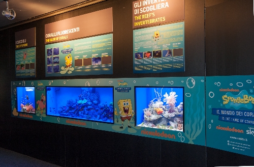 Con Nickelodeon, ad esempio, dal 2012 sono stati realizzati lungo il percorso un corner bimbi dedicato a Bikini Bottom, la casa di Spongebob, una personalizzazione dell’area didattica dei coralli, una grande serata inaugurale in occasione della Giornata Mondiale dell’Oceano, speciali animazioni a tema marino, l’allestimento di alcune vasche tropicali dedicate ai protagonisti della serie tv e, nel 2015, una speciale collana editoriale in collaborazione con RCS - 'SpongeBob. Un mare di scoperte'.