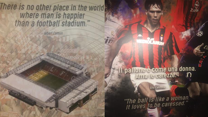 Nella sezione dedicata ai portieri, sono rappresentati i ritratti e le storie di 9 portieri diversi per epoca, profilo, nazionalità ed età. La sezione sugli stadi elenca i migliori 50 stadi del mondo per poi approfondire l’esposizione dei cinque più conosciuti: San Siro, Allianz Arena, Maracanà, Santiago Bernabeu, La Bombonera.